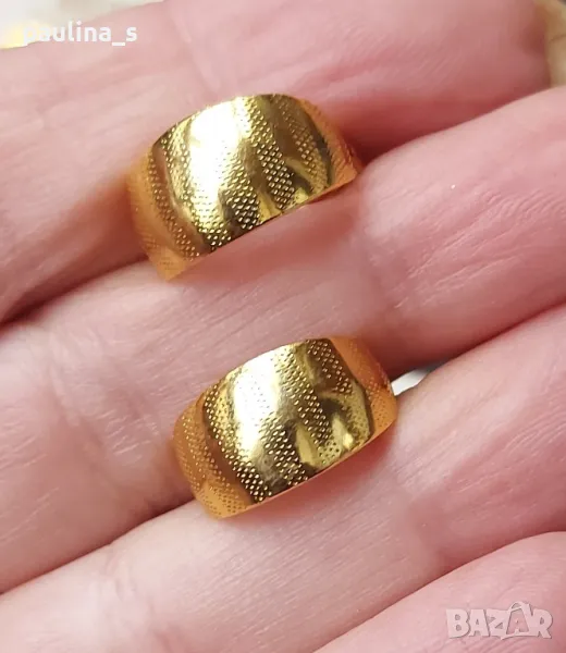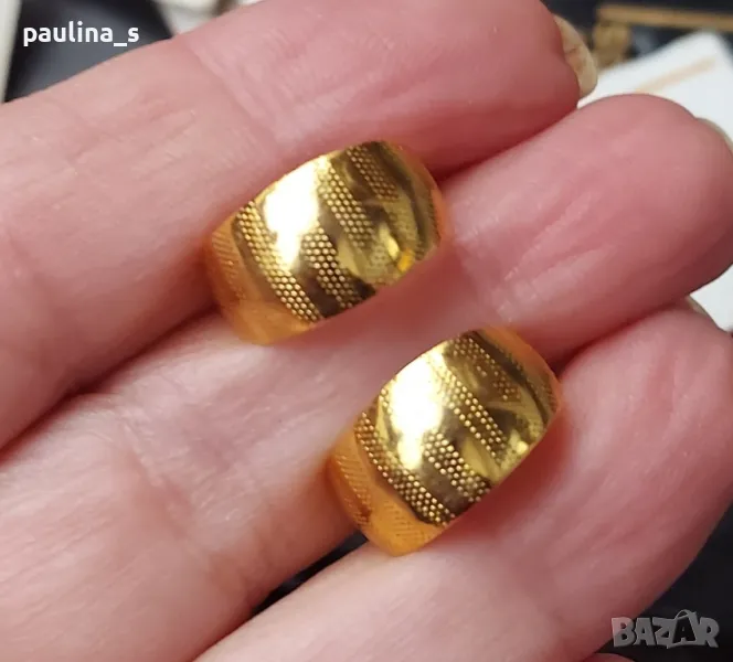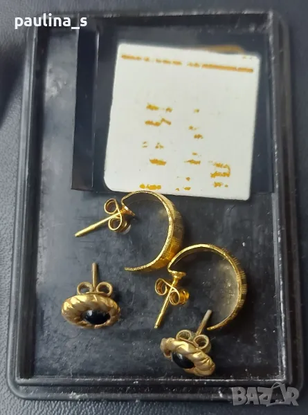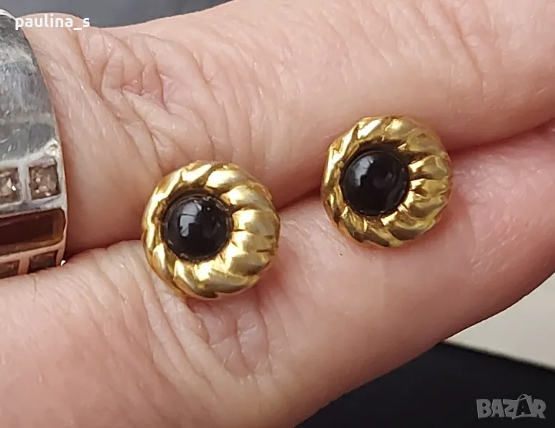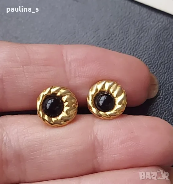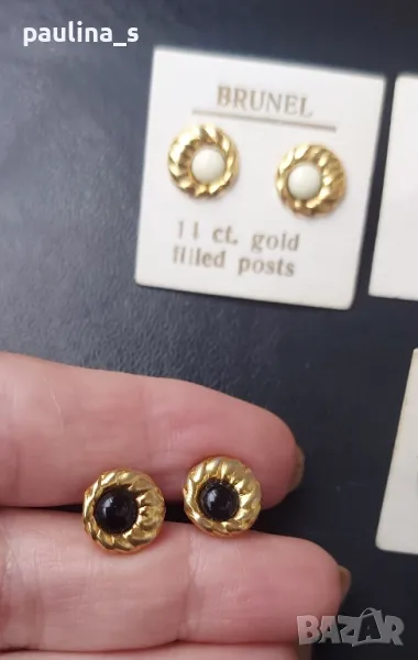 2. Тези, които са 14к gold plated - са на цена 54,99лв, за бройка. С бял и черен камък, диаметър 11мм, по модел на Тифани от 70-те години. С черния камък, не са нови, имат леко патиниране.