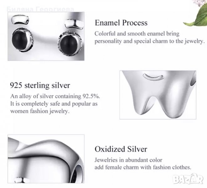 Талисман сребърен за гривна Пандора зъбче THE TOOTH модел 020 → Обява 34630505