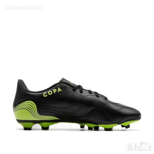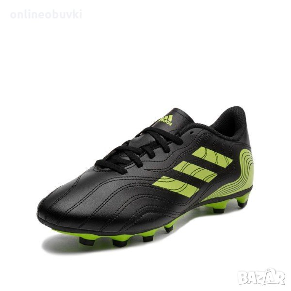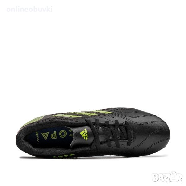 Мъжки маратонки за футбол калеври ADIDAS COPASense Черно с електрикови ленти изработени от висококачествена еко кожа, подходящи за тренировки върху естествен терен.