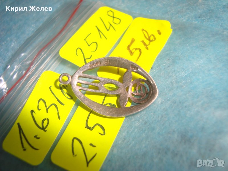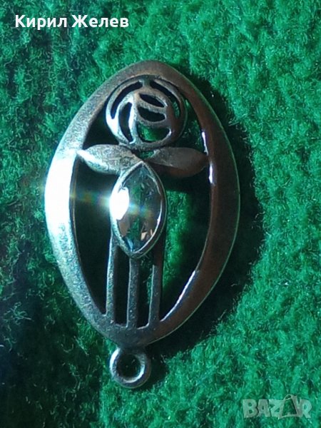 СРЕБЪРЕН АРТ МЕДАЛЬОН със САПФИР АНГЛИЯ СРЕБРО 925 и ПЕЧАТИ за КАМЪКА СКЪПОЦЕНЕН ПЕНДАНТ БИЖУ 25148