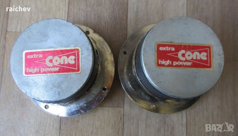 EXTRA CONE High Power – Високочестотни говорители, булети. Външен диаметър - 9,7 cm. Монтажен диаметър 7,4 cm. Монтажна дълбочина - 5,5 cm. 8 ома. Сервизирани с нови системи. – 78 лв.