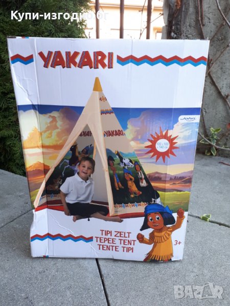 Детска палатка с дизайн: с красив Yakari и мотив на дъгата от комиксовата поредица Yakari - основен цвят: бежова (в цвят пясък) PE основа в червено.
