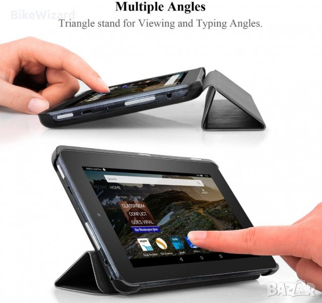 Със стойката си Fire 7 го държи под идеален ъгъл за гледане на видеоклипове и слайдшоута или за писане на екранната клавиатура