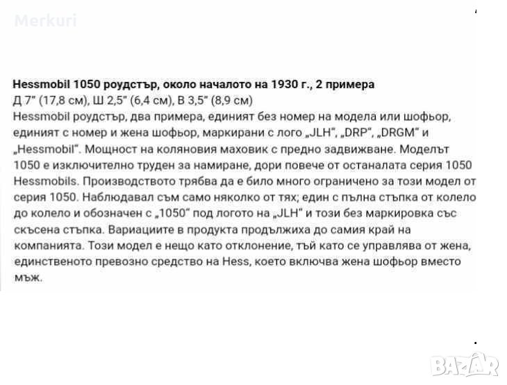 Стара много рядка ламаринена количка Hess Mobil 1050 JLH → Обява 34637311