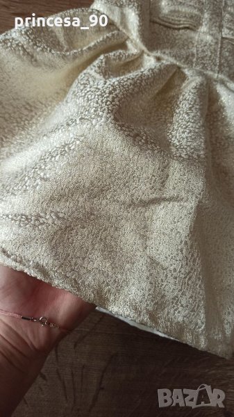 Нова детска рокличка, бяла със златисто, подходяща и за коледна фотосесия, с копчета на гърба, размер 80. Цена 7 евро.