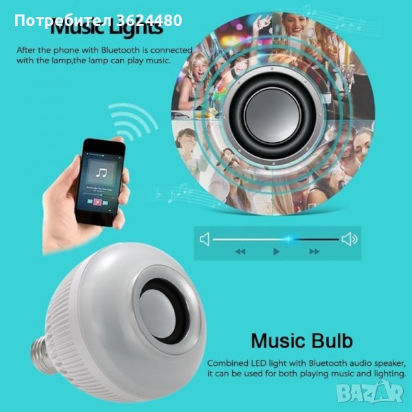 Многоцветна ЛЕД лампа с Bluetooth и високоговорител