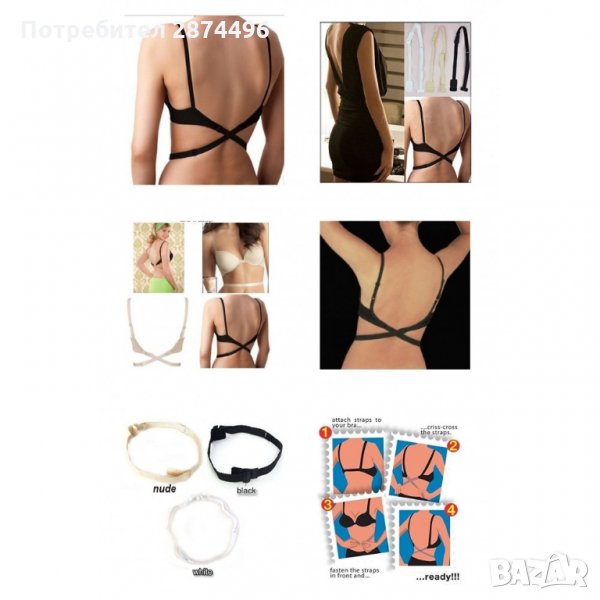 Удобно решение в комплект от черен, телесен и бял цвят, което дава възможност да се носи обикновен сутиен, който ти дава нужната подкрепа и форма, с дрехи с дълбоко изрязан гръб. Може да се носи с всеки сутиен.