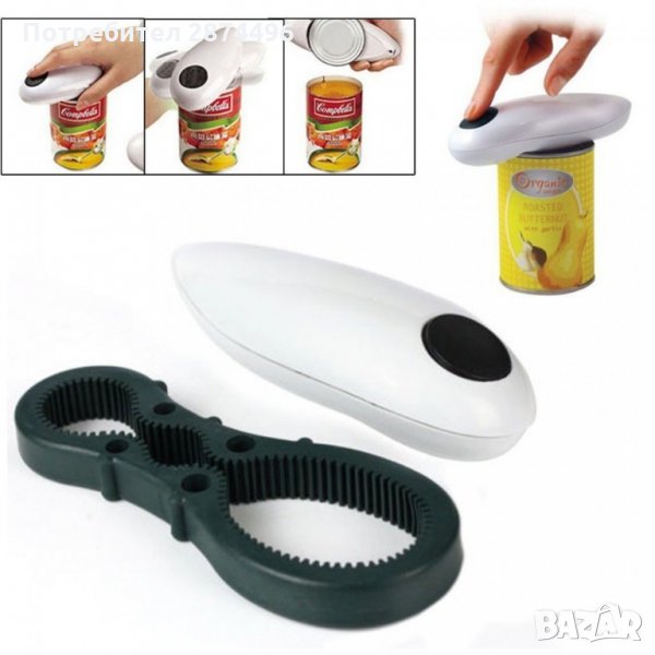 С One Touch Can Opener - Автоматична отварачка за консервивече ще можете да отваряте консерви само с натискането на един бутон, няма да ви се налага да използвате сила или да пробивате консервите си.