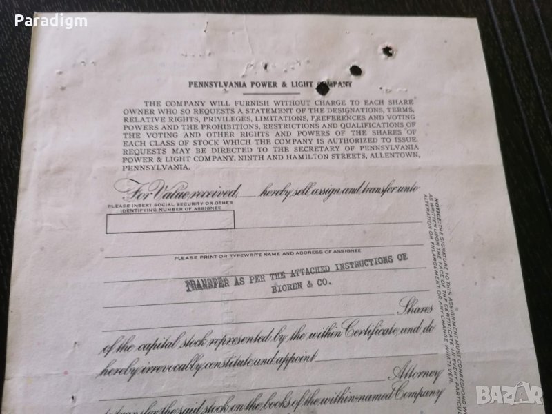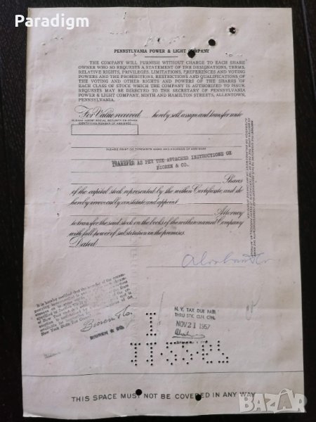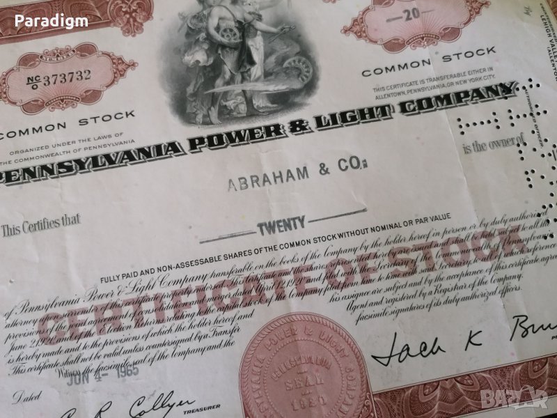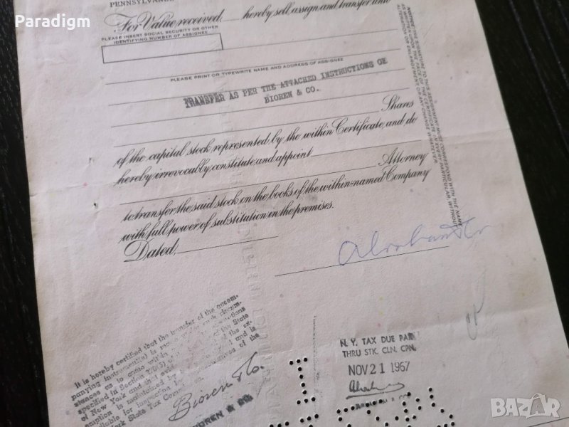 Сертификат за притежание на акции от 1965г.