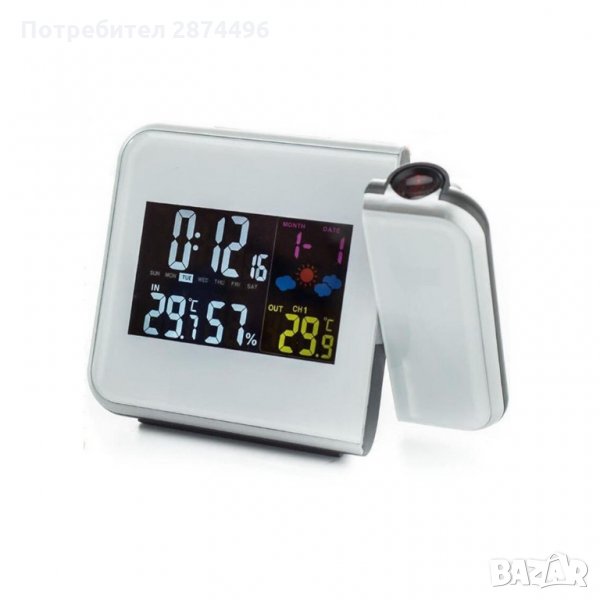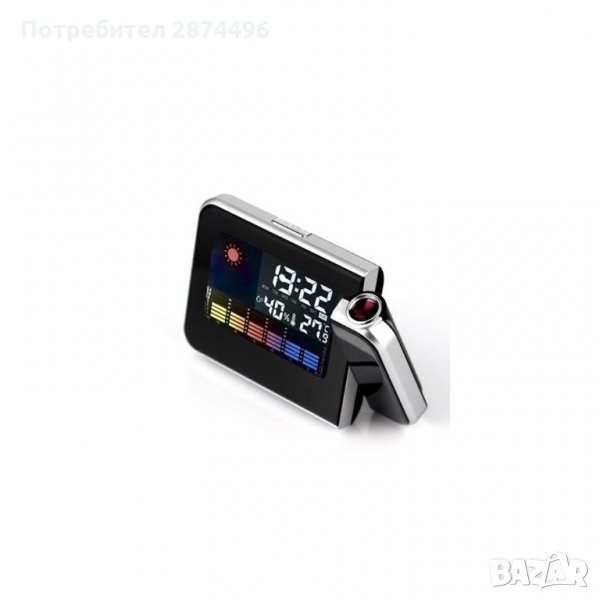 3 в 1 Настолен часовник - метео станция с прожектор за стена и таван + влагомер, термометър, аларма и цветен дисплей.