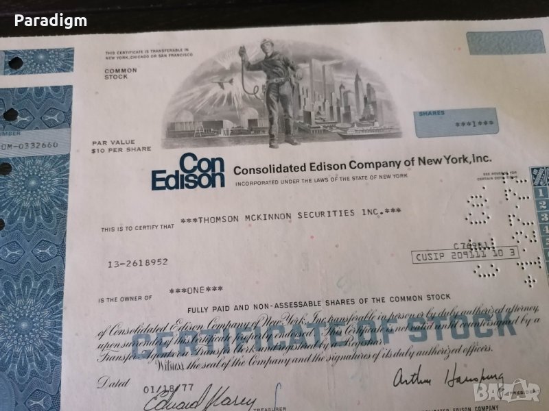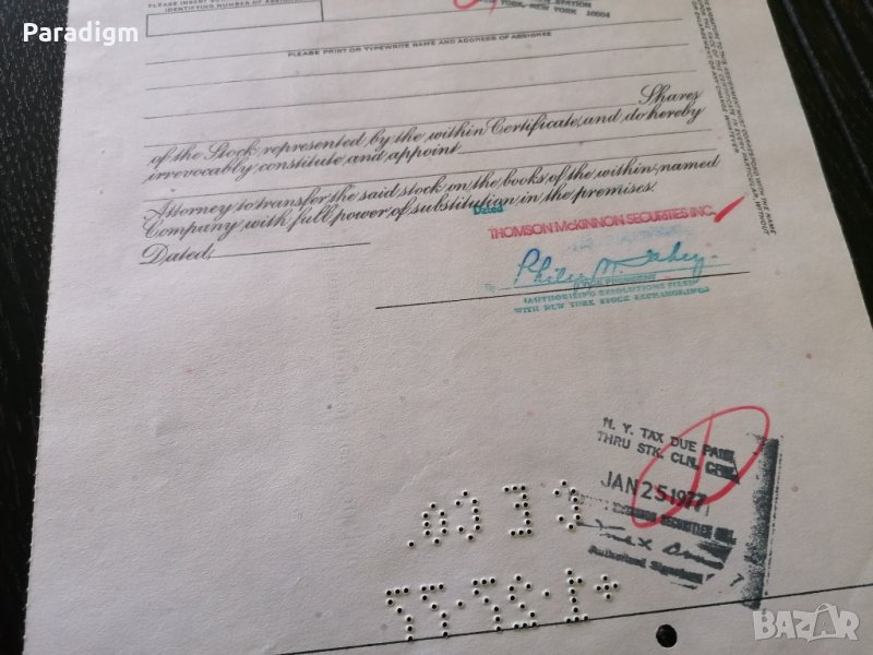 Сертификат за притежание на акция от 1977г.