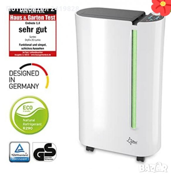Влагоабсорбатор SUNTEC DRYFIX 20 LUMIO,с функция пречистване и йонизиран на въздуха ,и като влагоабсорбатор