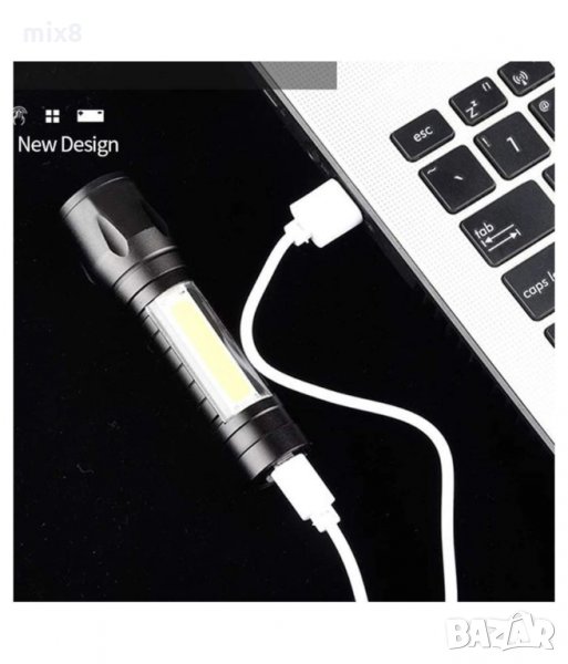 Мини фенер COB LED светлина, zoom, 3 режима на работа, USB зареждане и кутийка за съхранение