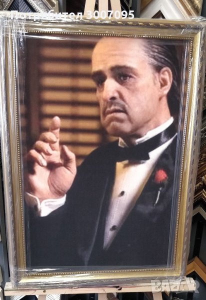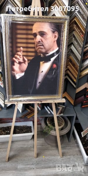 Продавам картината Вито Корлеоне III. Размер 46х64 см. Цена 110лв. Канаваца опъната върху подрамка и след това рамкирана. Има монтиран окачвач за стена.Повече от 200 налични картини. Доставка до 24 часа. 0886 350 389