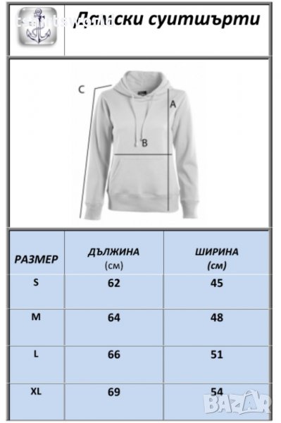 Таблица с размери в см е прикачена към снимките на продукта!!!