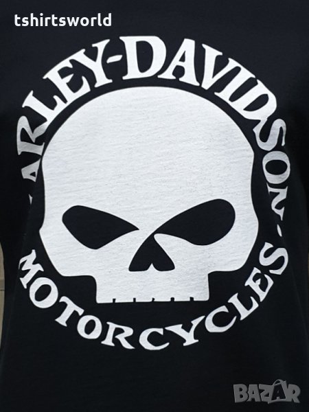 HARLEY DAVIDSON с череп. Тениската е изработена в България под марката PRINTEX от висококачествен 100% пениран памук на 170 гр./м², който запазва цялостта на материята и наситеността на цветовете. С удобна кройка, тениската е свободна и позволява максимален комфорт при носене. Професионално изработен висококачествен дигитален печат, устойчив на пране с години. Тениската може да се пере при температура до 40 градуса. Спокойно можем да гарантираме за качеството на изработката и ярките цветове на дизайна.