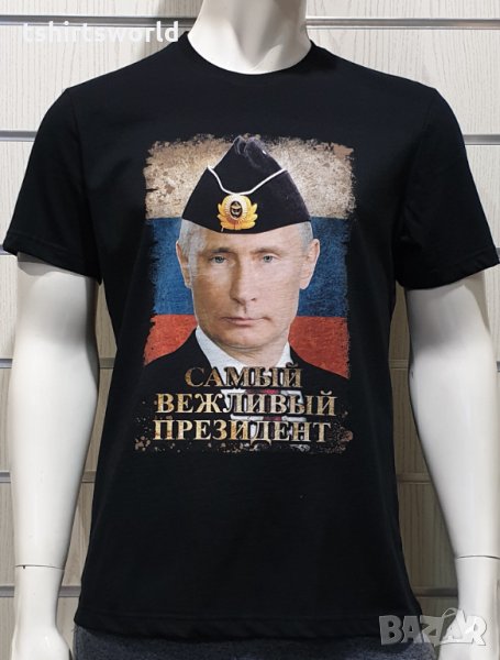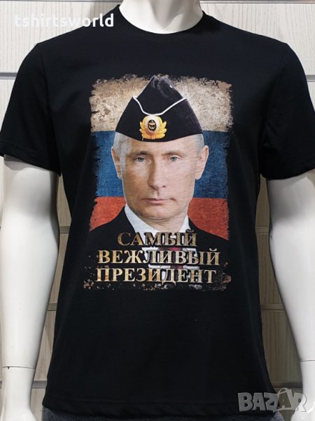 Нова мъжка тениска с дигитален печат Владимир Путин - Самъiй вежливъiй президент