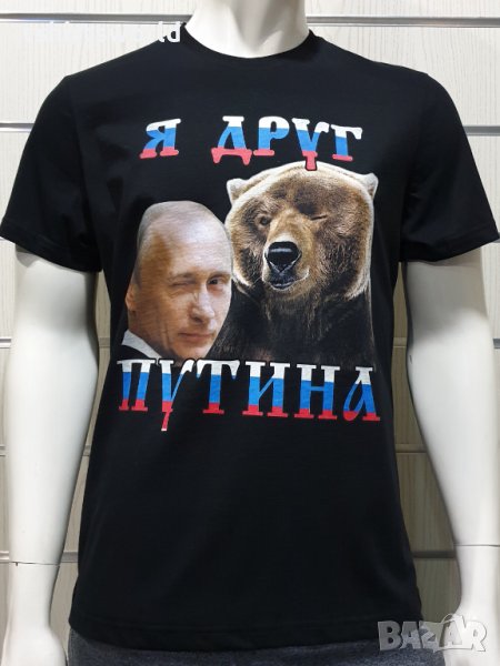 Нова мъжка тениска с дигитален печат Владимир Путин - Я Друг Путина, с Мечка