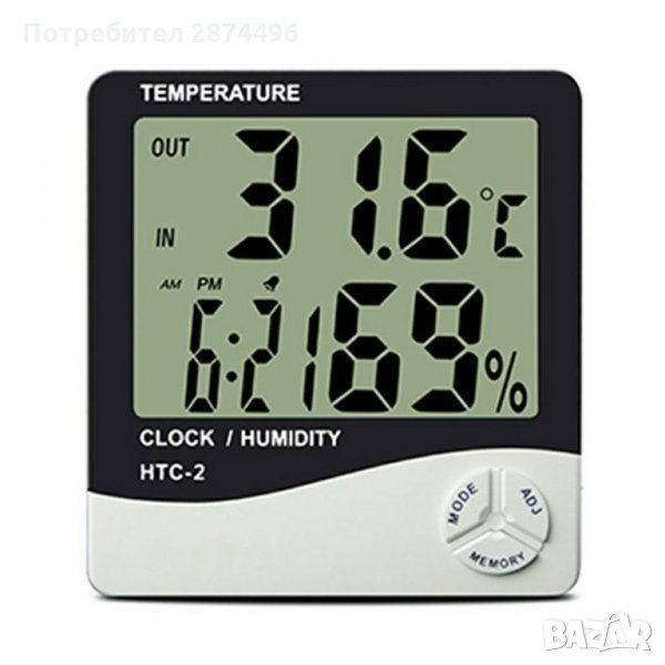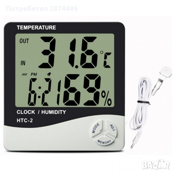 Стаен термометър HTC-2, Термометър вътрешна и външна температура, Влагомер, Часовник