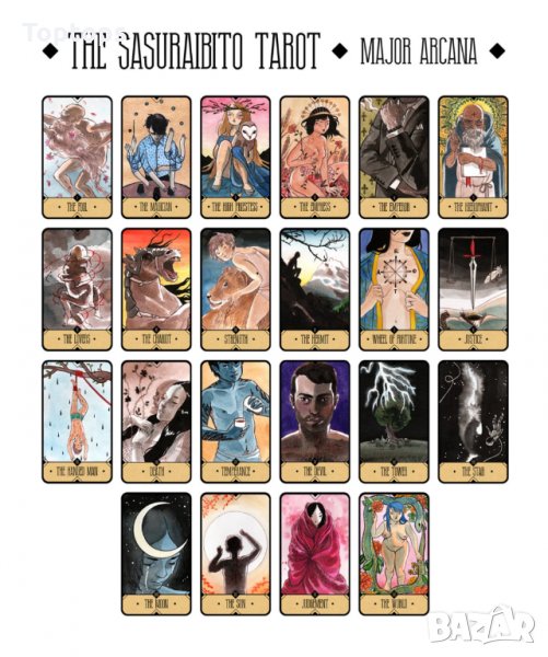 Sasuraibito Tarot - уникални 78 таро карти с кутия и хартиена книжка