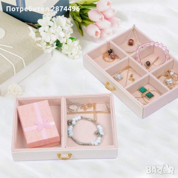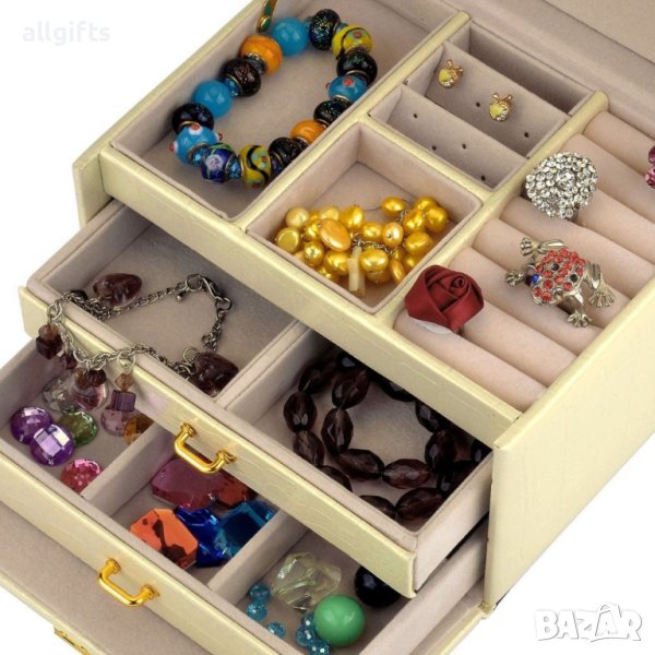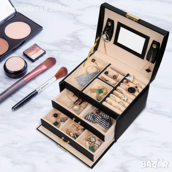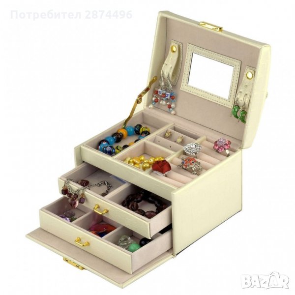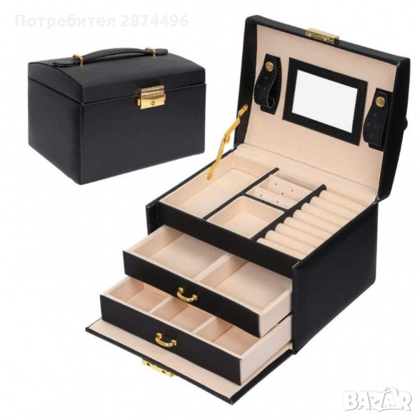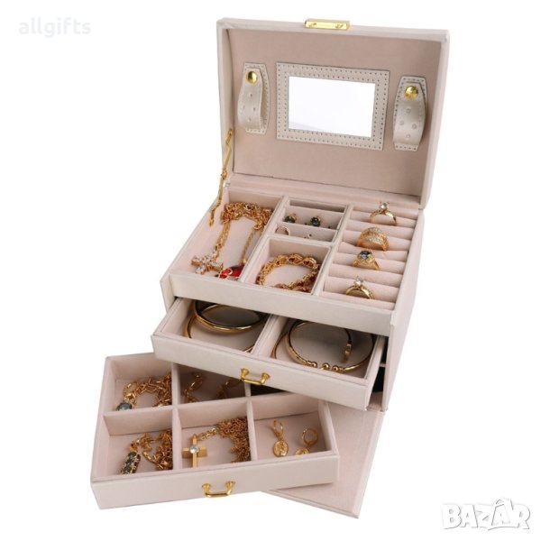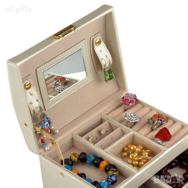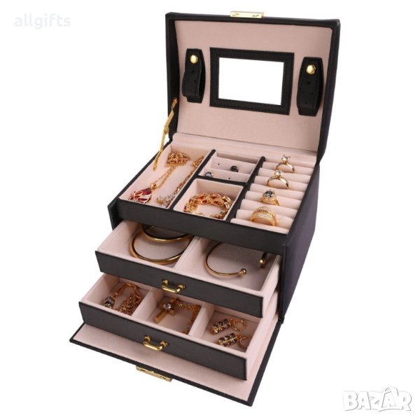 Тази специална кутия е страхотен подарък за всеки любител на красивото и практичното. Моделът е стилно решение на проблема с организацията на бижутата и аксесоарите, както и на някои козметични продукти. Отвън кутията е облицована с елегантна синтетична кожа, а вътрешността е от мек велур, който защитава бижутата и аксесоарите.