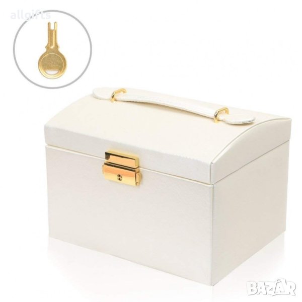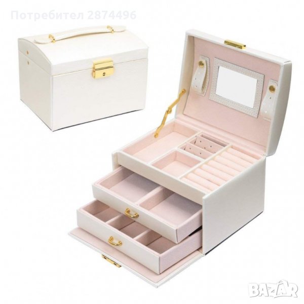 Луксозна Кутия за бижута и аксесоари в бяло с три нива и огледало