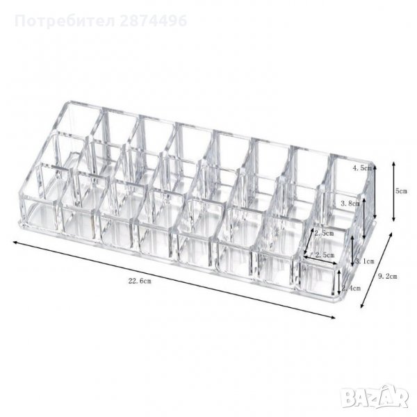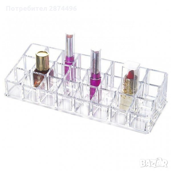 Организаторът разполага със специални опори за червила, кремове, четки, лакове за нокти или други аксесоари.