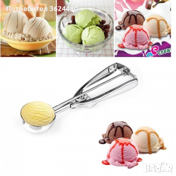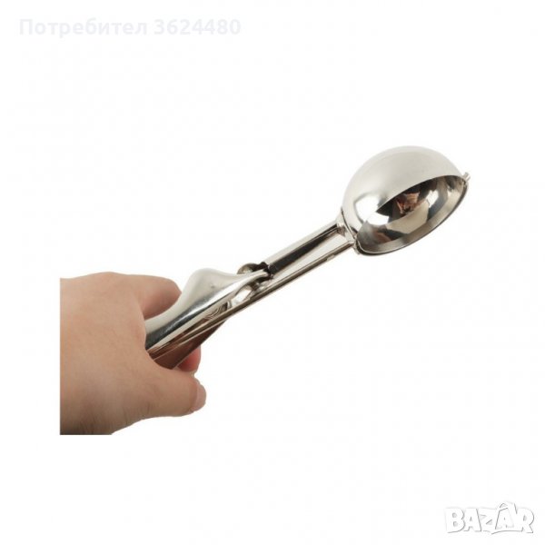 Лъжица с пружинен механизъм който позволява с едно движение да напражите перфектната топка сладолед,дори млечна или руска салата!