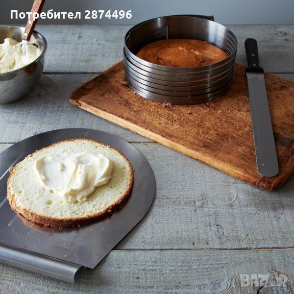 Един от най-лесните начини за разрязване на тортен блат е използването на този регулируем ринг.