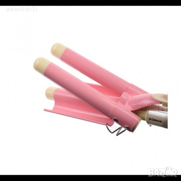 Оформянето на вашата прическа вече е лесно като детска игра. С този професионален уред за оформяне може лесно да постигнете професионални резултати в домашни условия. Артикула е конструиран така че лесно може да си правите кичури като захващате по-голяма площ от косата - около 10 см. Диаметъра на тръбичките захващащти косата е 25 мм. Машата е направена така че защипвате кичур от косата си в специалната вълнообразна щипка на корпуса на машата. За по рехави къдрици или за стегнати букли може да избирате между три варианта като градуси 200, 220 и 180 градуса. Прибираща се телена стойка на която може да подпирате вашата маша. Нагревателната повърхност е изработена от материал с керамично покритие, машата лесно може да бъде винаги с вас където и да сте поради компактните си размери. Плъзгащ превкючвател за увеличаване и намаляване на температурата. Въртящ се кабел в основата на машата. Захранване: 220V от домашната ел. мрежа. Дължина на захранващия кабел: 1.90 м. Тегло с опаковката: 500 гр. Консумирана мощност: 80 W Размер: 370 х 95 мм.