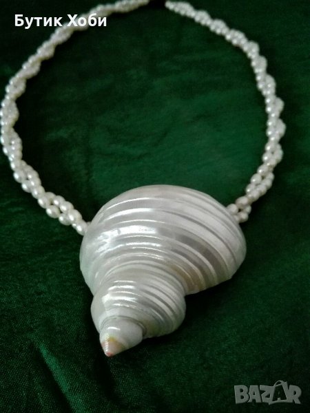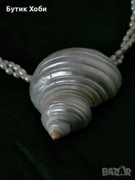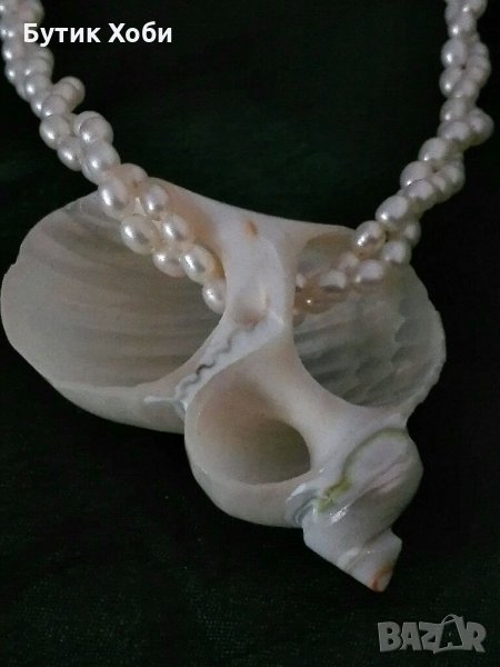 Прекрасно съчетание от естествени перли и седефена раковинка- медальон. Раковинката може да се сваля и да се използва самостоятелно. 100% натурални са !