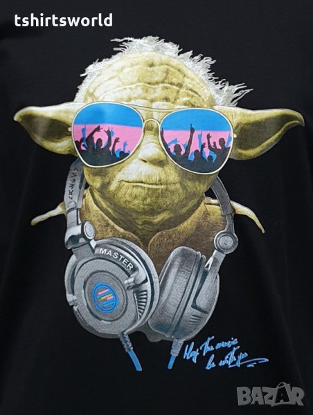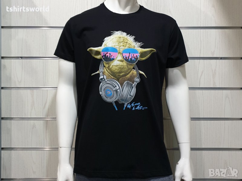 на героя от Междузвездни войни, Йода. Тениската е изработена в България под марката PRINTEX от висококачествен 100% пениран памук на 170 гр./м², който запазва цялостта на материята и наситеността на цветовете. С удобна кройка, тениската е свободна и позволява максимален комфорт при носене. Професионално изработен висококачествен трансферен печат