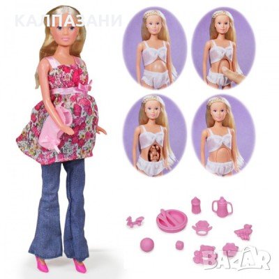Красивата кукла Стефи чака първото си бебче. Помогнете й да се погрижи за него, заедно с включените в комплекта аксесоари.