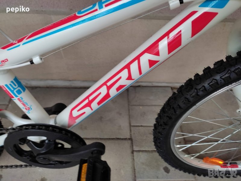 НОВ детски алуминиев велосипед SPORT SPRINT APOLON 20 цола,олекотена алуминиева рамка от хидроформовани тръби 20 цола с 7 скорости,фиксирани превключватели SHIMANO TOURNEY 6,средно движение касета,метални курбели с пластмасово покритие,пластмасови педали,заден отклонител SHIMANO TOURNEY 6,задни венци седмица,предна и задна емайлирани черни главини VELOTEC,алуминиева лапа и кормило,спортна седалка,алуминиеви вибрейк спирачки,алуминиеви стандартни капли,никелирани спици,гуми със спортен грайфер КЕНДА 20 х 1,75,размер на рамката 27 х 43см.тегло 11,9 кг.много добър велосипед.