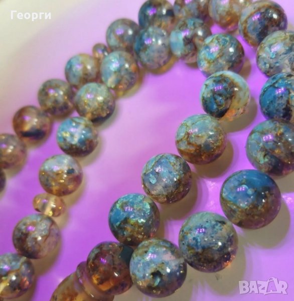 Уникална молитвена броеница Розарий ,33 камъка,разкошни прозрачни цветове,отлично съхранени фосили и множество включвания.