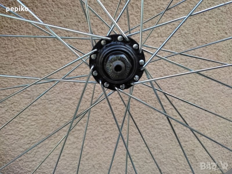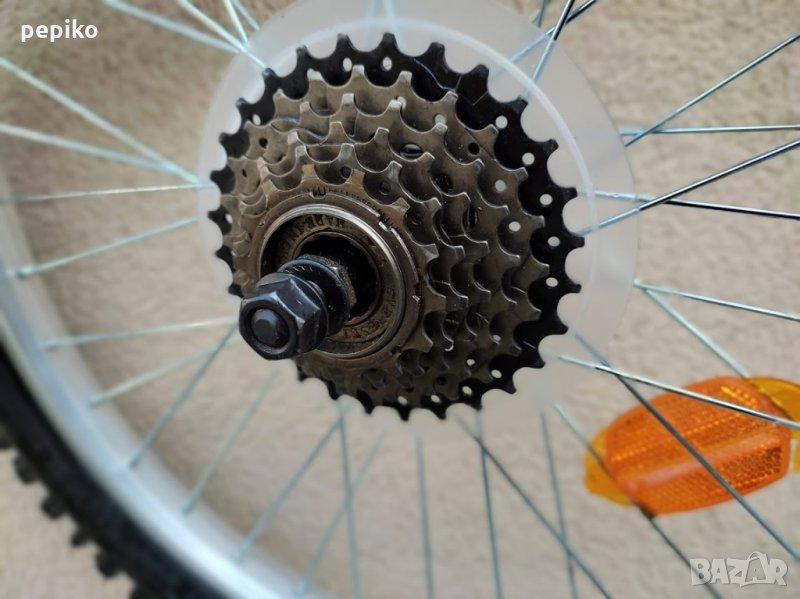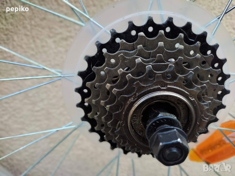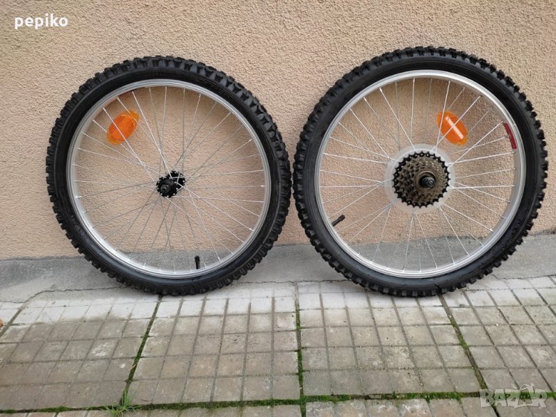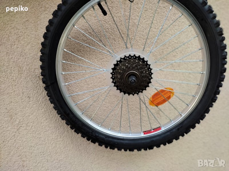 Комплект НОВИ капли и гуми и венец SPORT 20 цола,алуминиеви стандартни капли 20 цола с 36 спици,емайлирани черни главини VELOTEC,задна главина на резба в комплект с венец касета за 6 скорости,предна главина с куха ос без автомат,каплите са за вибрейк спирачки,НОВИ външни и вътрешни гуми КЕНДА 20 х 1,75 външни гуми със спортен грайфер,много добри.