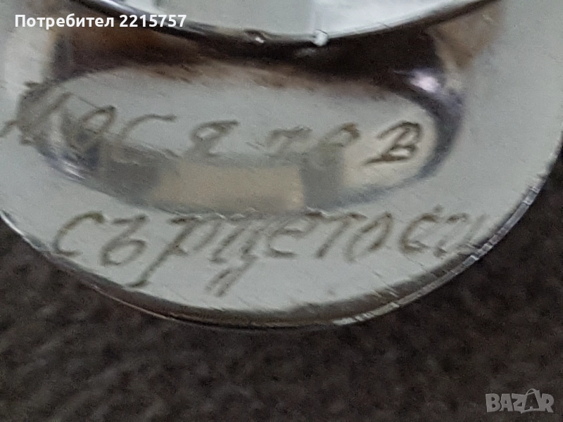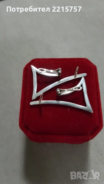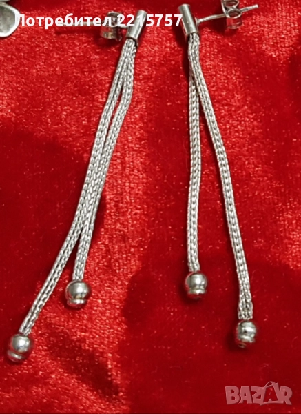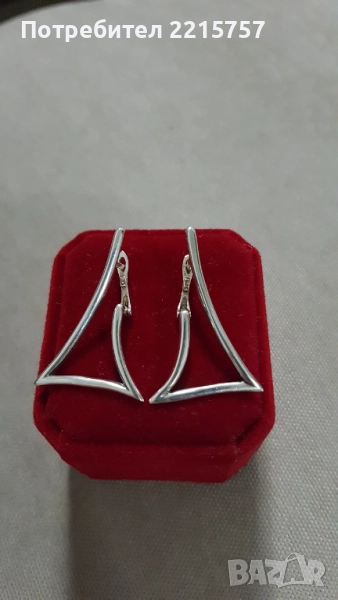 Сребърни обеци треъгълна форма. Дъл.4см. Цена 45лв...................................................................................................................5)Обеци сребърни старинни. Донесени от Росия. От 1975г. Дъл.6см. Има маркировки: звезда, година и буква М. Цена 85лв................................................................................................................6)Позлатена гривничка от Италия. Има маркировка. дъл.21,5см става и за крак. Цена 25лв................................................................................................................7)Позлатена гривна с топчета без маркировка, проверена е. Дъл.20см. Цена 10лв.