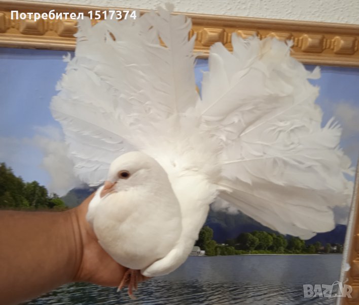 Продавам гълъби, Фенерлии , на капак , с цветни опашки , чисто бели , с гащи → Обява 34675193