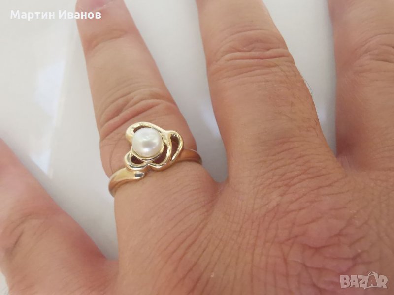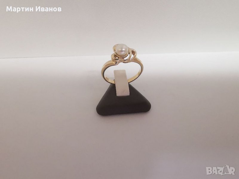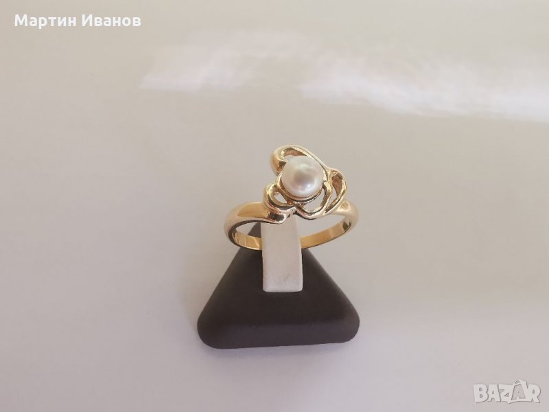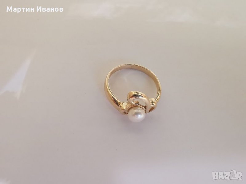 Златен пръстен с бяла перла, 14к, 585пр, 3.39гр гр, вътрешен диаметър 18мм, размер 57 мярка