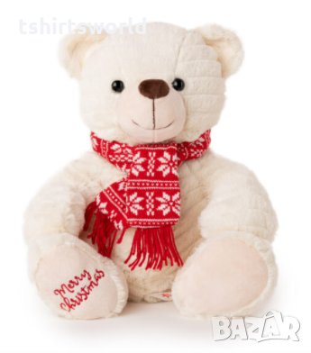 Плюшеното коледно мече е въплътило във себе си коледния дух и празнично настроение. На крачето има избродиран надпис „Merry Christmas“, което в превод значи „Весела Коледа“, а на вратлето си има червен плетен шал, който е обсипан с бели снежинки. Плюшената играчка е изработена от висококачествен плюш, който е мек и приятен на допир. Отговаря на европейската директива 2009/48/ЕО.