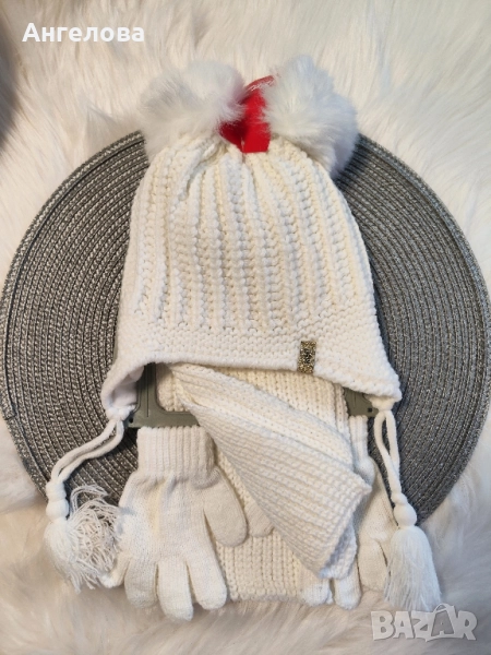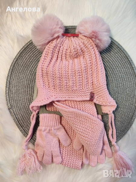 Комплект шапка, шал и ръкавици за момиче 1-4г → Обява 34681322
