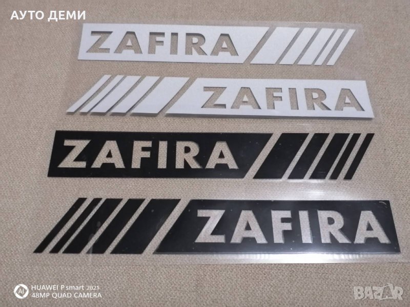 Цена за два броя в цвят сив или черен стикери за гърба на странични огледала на автомобил с надпис ЗАФИРА ZAFIRA - 14 лв .