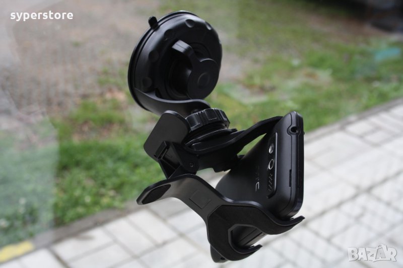 Универсална стойка за автомобил подхояща за всички видове мобилни телефони, GPS, PDА, плеъри , захващане към стъклото на автомобила с вакуум,завъртане на стойката на 360 градуса,захващане тип "Щипка",омекотени зони на захват, предпазващи устройството,лесен монтаж и демонтаж // UNIVERSAL GSM,GPS,PDA / TELEPHONE CAR HOLDER