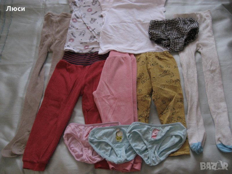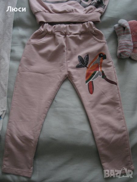 Само лично предаване На 1-7 снимки , розов комплект с птица , почти не носен + подарък чорапогащник и чорапки + летен комплект от 4 дрешки ръст до 98 , без забележки = цена 12 ев . На 8-9 сн. лот дрехи размер 98-104 , 2 броя панталони-топъл плюш +2 чорапогащника + 2 тениски + 5 пликчета - всичко без забележки и подарък топъл клин и още тениска и клинче. всичко= 5 ев . На последни 5 сн.- кроксове размер-26 (дължина на стелка 15,5) без забележки цена 4 ев .