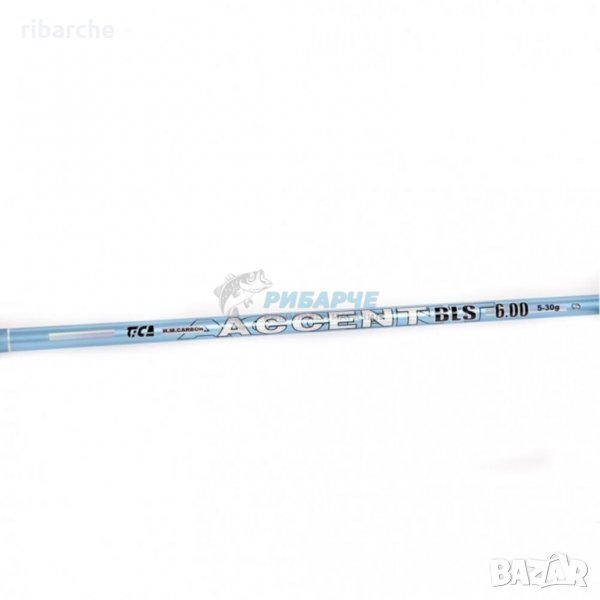 Болонезе Tica Accent - 5м/6м е най новото попълнение на марката , изработен от високомодулен TC-4 карбон със стегнат и бърз полу- параболичен строй и акция.5-30гр , с 8 броя качествени ,издължени водачи ,и удобна дръжка с малък диаметър. Лека, здрава и добре балансирана, с отличен контрол при вадене на рибите. Въдица от висок клас, Отличен избор за риболов на Скобари, Бели Мрени , Кефали и дриги борбени риби