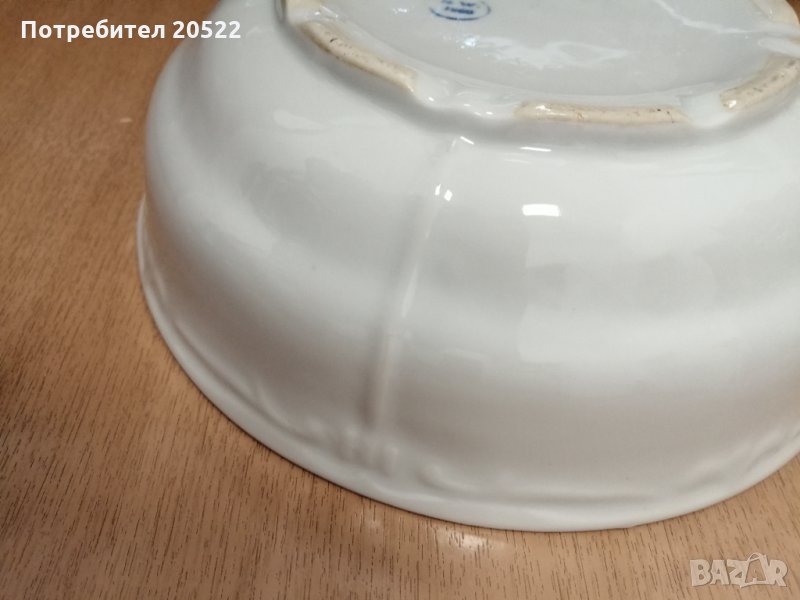 Порцеланова купа за салата на (Сталин) Видин от 1960г. С бароков релеф, без забележки с изключение на миниатюрна резка, която не се забелязва. (на 1та снимка) отгоре до канта.