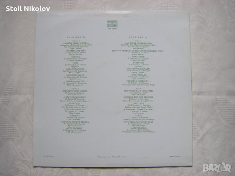 Грамофонна плоча - ВТА 11104 - Фестивал на политическата песен "Ален мак" (Благоевград; 1983)