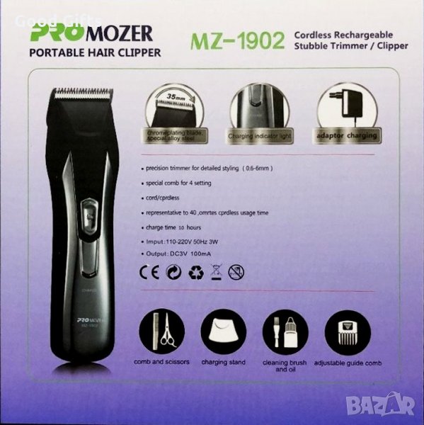 • Захранва се от батерия,издържа 40 минути непрекъснати подстригвания