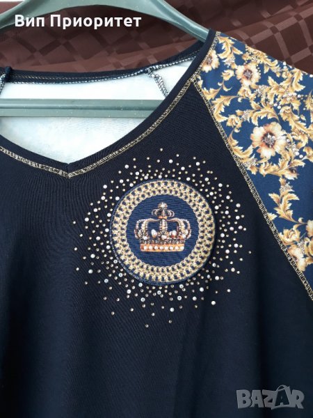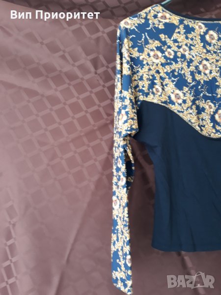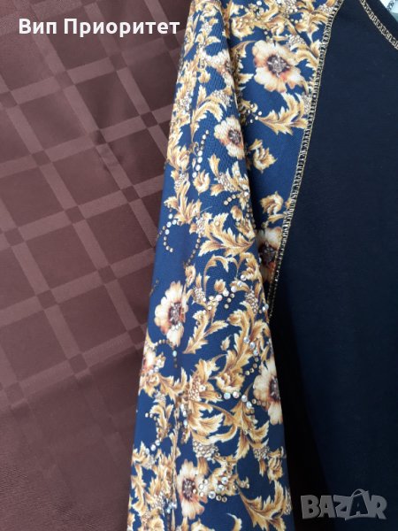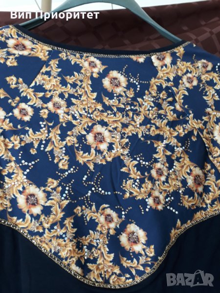 изящна тъмно синя блуза златни цветя → Обява 34710252