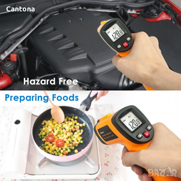 - Диапазон на измерване: -50 °C до 550 °C / -58 °F до 1022 °F, преносим и противоплъзгащ дизайн улеснява измерването на температурата на открито и на закрито.